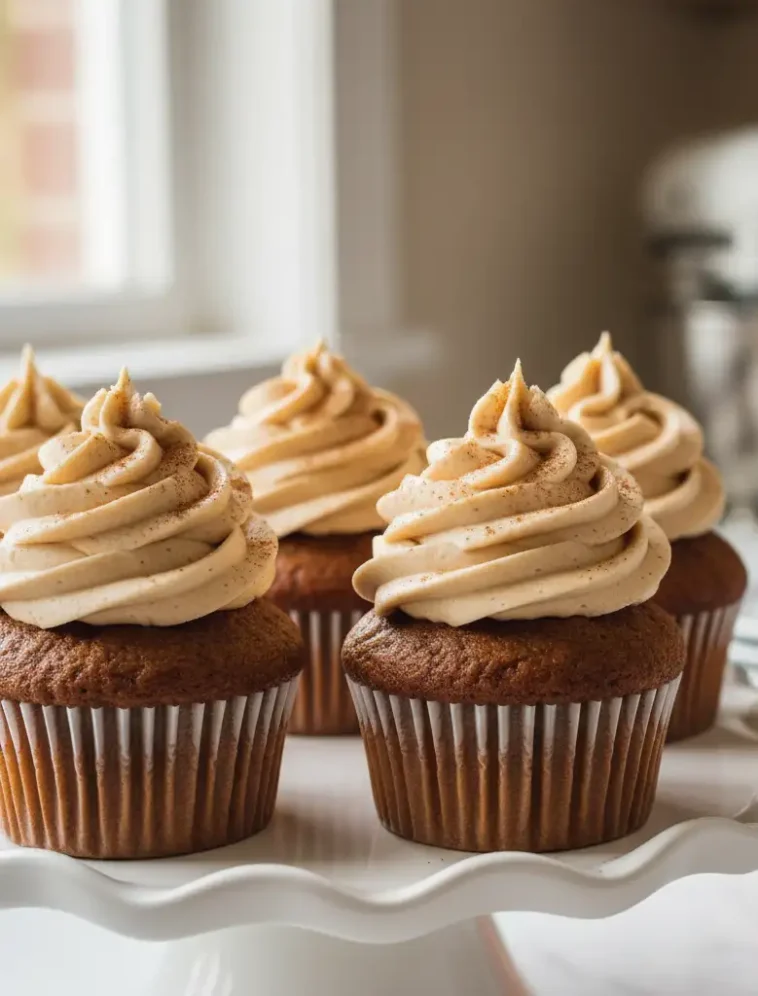 - Buttercreme aufspritzen: Die Zimt-Buttercreme mit einem Spritzbeutel auf die abgekühlten Cupcakes spritzen.