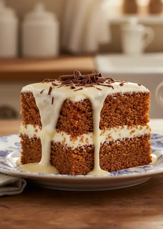 3. Guss verteilen: Den abgekühlten Kuchen mit dem Eierlikörguss beträufeln und gleichmäßig verteilen. Optional mit gehackten Nüssen oder Zimt bestreuen.