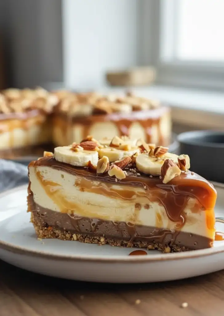 Bananen-Karamell-Käsekuchen mit Mandelkruste