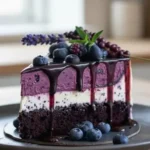 2. Servieren: Schneide den Käsekuchen mit einem heißen Messer in Stücke und serviere ihn kühl.