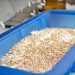 Den angebratenen Sterz ca. 1 Stunde im Backofen fertig backen, dabei immer mal wieder mit dem Pfannenwender durchmischen. Am Ende sollte er goldgelb und schön bröselig sein.
