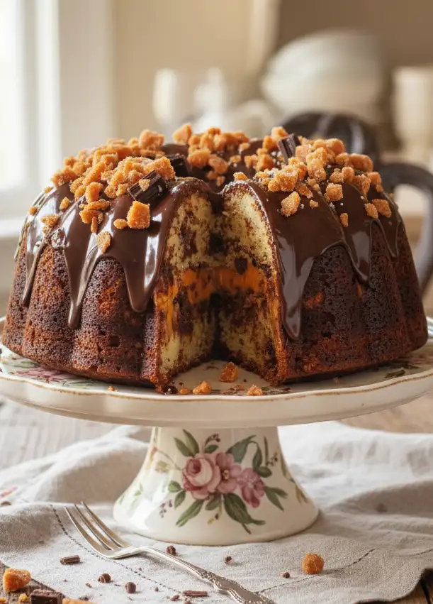 Butterfinger-Gugelhupf mit dekadentem Schokoladenüberzug