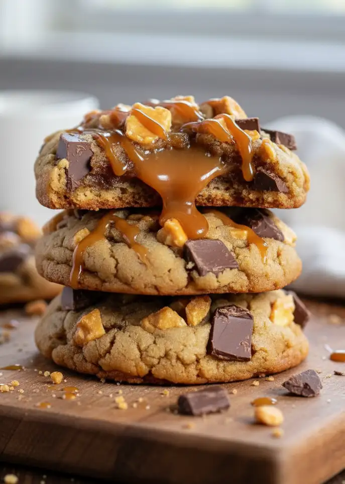 Diese Butterfinger-Karamell-Crunch-Kekse vereinen den unwiderstehlichen Geschmack von knusprigem Karamell, cremiger Butter und einer Prise Salz zu einem perfekten Genuss. Ideal für gemütliche Nachmittage, als Geschenk aus der Küche oder als Highlight auf jedem Kaffeetisch. Die Kombination aus süßem Karamell, salziger Note und knusprigem Crunch macht diese Kekse zu einem absoluten Favoriten – nicht nur in der Weihnachtszeit!