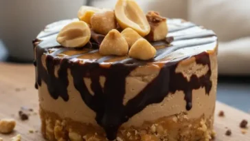 14 Views in Dessert Rezepte, Süsses und Cremig RezepteMini-Erdnussbutter-Käsekuchen mit Karamell-Topping