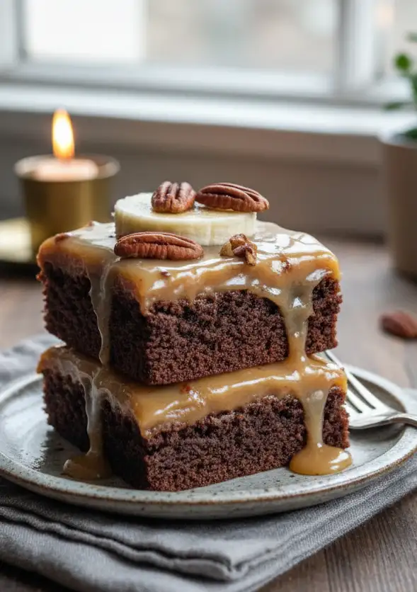 Diese Dekadenten Bananen-Karamell-Fudge-Brownies vereinen das Beste aus zwei Welten: die natürliche Süße reifer Bananen und die intensive Schokoladennote klassischer Brownies, gekrönt von einem unwiderstehlichen Karamell-Fudge-Topping. Das Ergebnis ist ein saftiger, fudgy Brownie mit einer perfekten Balance aus Fruchtigkeit, Schokolade und cremigem Karamell. Ideal für Kaffeetrinker, Dessertliebhaber oder als süßer Snack für zwischendurch!