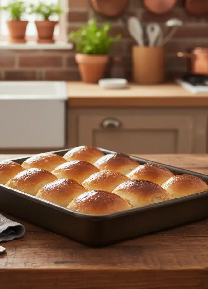 5. Abkühlen lassen: Die Brötchen aus dem Ofen nehmen und auf einem Gitterrost abkühlen lassen. Warm servieren oder in einem Brotkorb aufbewahren.