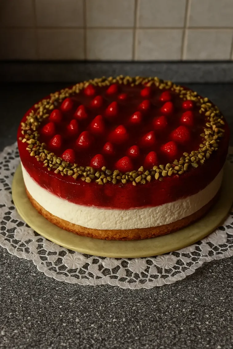 Der Erdbeer-Kuchen mit Vanillecreme ist der Inbegriff von Sommer auf dem Teller: Ein saftiger, fluffiger Boden, eine cremige Vanille-Schmand-Sahne-Schicht und frische, süße Erdbeeren, die mit glänzendem Tortenguss überzogen sind. Dieser Kuchen ist nicht nur ein optisches Highlight, sondern auch ein Geschmackserlebnis, das Groß und Klein begeistert. Ideal für Kaffeetafeln, Gartenpartys oder einfach als süße Belohnung nach einem langen Tag.