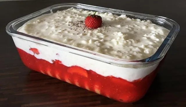 Im Kühlschrank mindestens 2 Stunden durchziehen lassen. Eventuell mit der restlichen Erdbeersauce dekorieren.