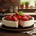 Die Torte für weitere 1 Stunde in den Kühlschrank stellen, damit der Tortenguss fest wird. Vor dem Servieren vorsichtig aus der Form lösen und genießen.