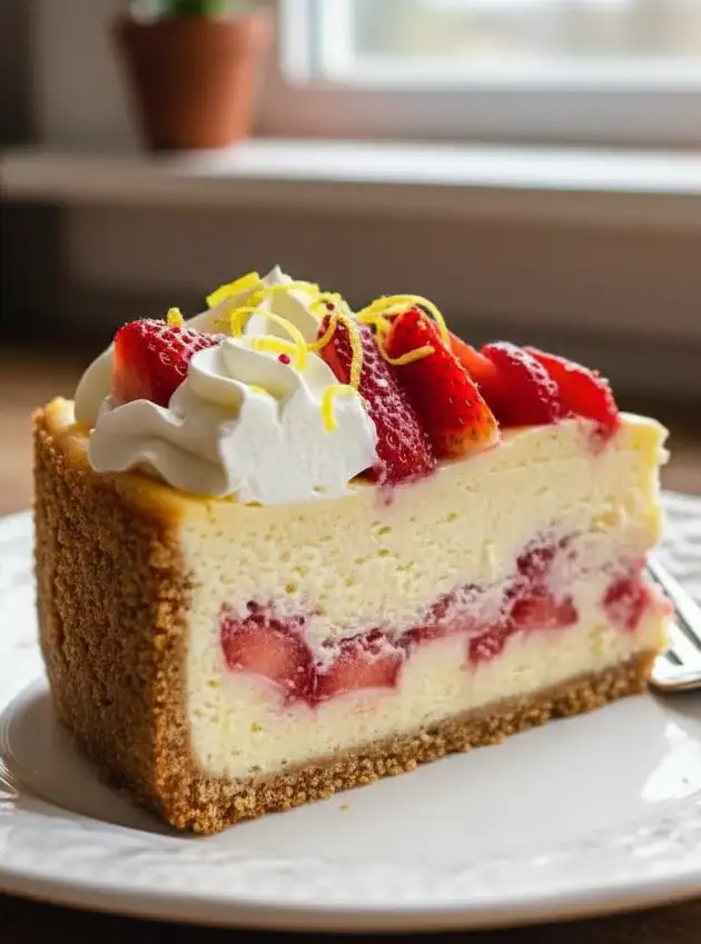 Erdbeer-Zitronen-Käsekuchen Rezept – Entdecke den perfekten Sommerkuchen mit cremiger Frischkäse-Quark-Füllung, knusprigem Keksboden und fruchtigem Erdbeer-Zitronen-Topping! Einfach zuzubereiten, optisch ansprechend und ein Geschmackserlebnis für jeden Anlass. Ideal für Gartenpartys, Familienfeiern oder als süße Überraschung. Schritt-für-Schritt-Anleitung mit Tipps für die beste Konsistenz und Dekoration. #Käsekuchen #Erdbeerkuchen #Sommerdessert