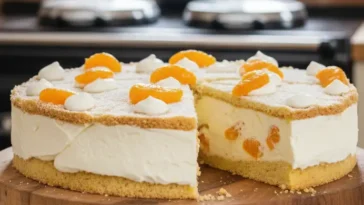 Zum Servieren in kleine Tortenstücke teilen und mit etwas Puderzucker bestäuben.