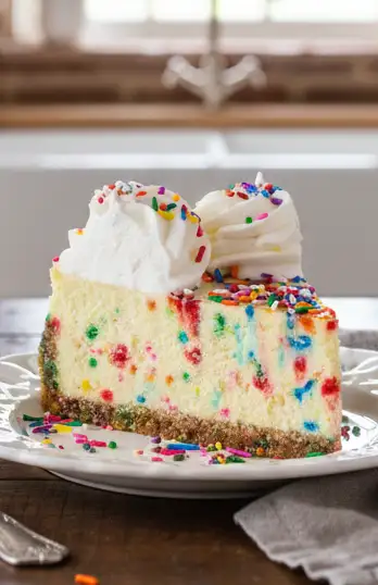 Der Funfetti Cheesecake ist eine bunte und fröhliche Variante des klassischen Käsekuchens. Mit seinen bunten Streuseln bringt er nicht nur Farbe auf den Tisch, sondern zaubert auch jedem ein Lächeln ins Gesicht. Ideal für Geburtstagsfeiern, Feiertage oder einfach nur, um sich selbst etwas Gutes zu tun. Dieser Käsekuchen vereint die cremige Textur von Käsekuchen mit dem süßen, knusprigen Biss von Funfetti.