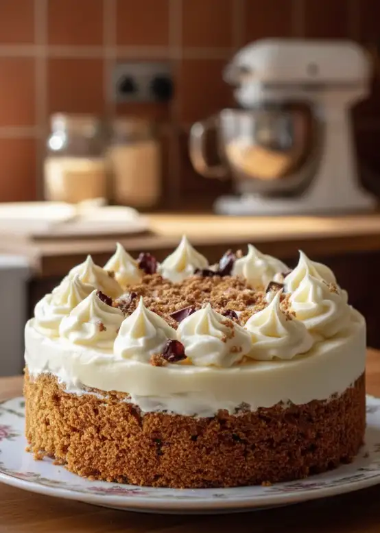 - Frosting auftragen: Den abgekühlten Kuchen auf eine Servierplatte geben und mit dem Frischkäse-Frosting gleichmäßig bestreichen.