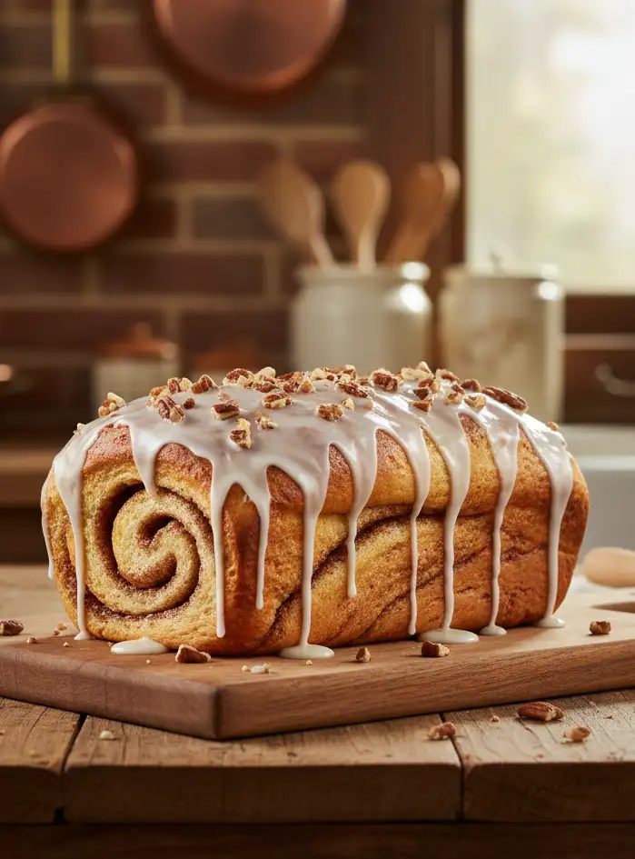 Genießen Sie den köstlichen glasierten Zimt-Pekannuss-Strudelkuchen – perfekt für die kalte Jahreszeit und ein Genuss für die ganze Familie!