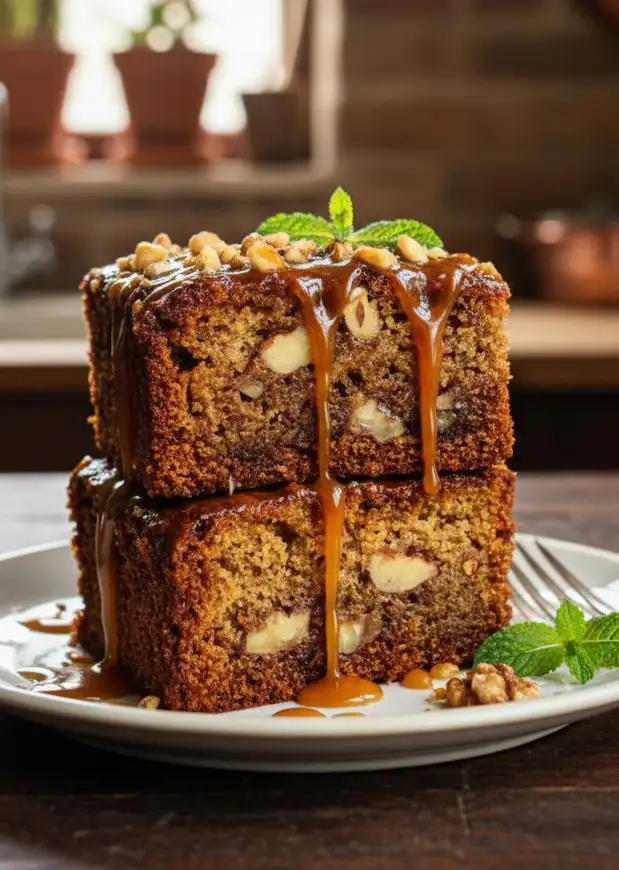 Den Kuchen aus dem Ofen nehmen, abkühlen lassen und optional mit gehackten Haselnüssen oder dunkler Schokolade dekorieren.