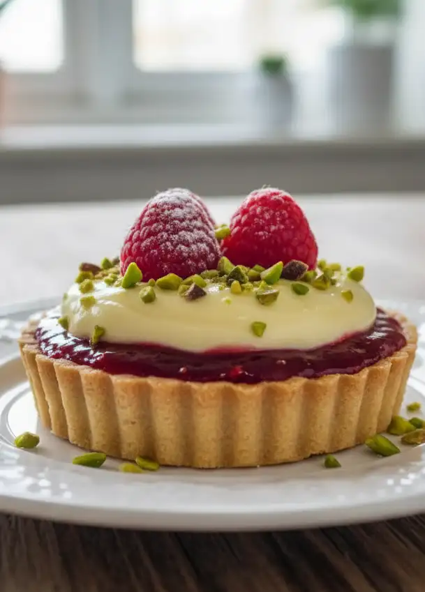 Die Himbeer-Weiße-Schokoladen-Törtchen sind eine perfekte Symbiose aus fruchtiger Frische und cremiger Süße. Jeder Bissen vereint die saftige Intensität reifer Himbeeren mit der zarten Schmelze weißer Schokolade, eingebettet in einen knusprigen Mürbeteig. Dieses Dessert ist nicht nur optisch ein Highlight – die leuchtend rote Farbe der Himbeeren kontrastiert wunderschön mit dem cremefarbenen Schokoladenglasur –, sondern auch geschmacklich ein unvergessliches Erlebnis.