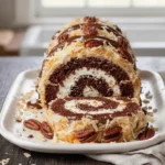 - Dekorieren: Creme auf den abgekühlten Kuchen streichen oder mit einem Spritzbeutel verzieren. Mit Zimt bestäuben und gehackten Haselnüssen garnieren. Nach Belieben mit Karamellsauce beträufeln.