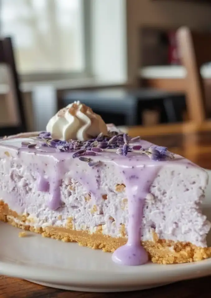 - Füllung auf den Boden geben: Verteile die Frischkäse-Lavendel-Masse gleichmäßig auf dem Keksboden und glätte die Oberfläche mit einem Löffel oder Spachtel.