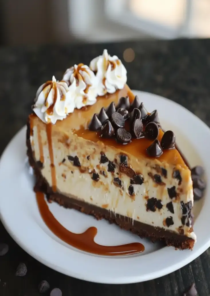 Dieser Käsekuchen mit gesalzenem Karamell und Schokoladenstückchen ist ein absoluter Traum für alle Naschkatzen! Die Kombination aus cremigem Käsekuchen, süß-salzigem Karamell und knusprigen Schokostückchen sorgt für ein unvergessliches Geschmackserlebnis. Der knusprige Keksboden, die saftige Frischkäse-Schicht und das selbstgemachte Karamell machen diesen Kuchen zum Star jeder Kaffeetafel. Perfekt für besondere Anlässe oder einfach, um sich selbst zu verwöhnen.