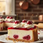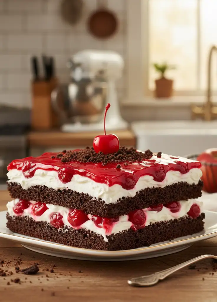 - Dekorieren und Servieren: Vor dem Servieren die Torte mit Kirschen und zerbröselten Oreos dekorieren. In Stücke schneiden und genießen!