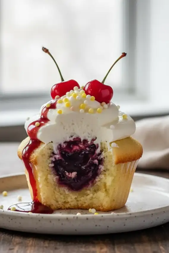 - Garnieren: Dekoriere jeden Cupcake mit einer halbierten Kirsche und optional Zitronenzesten.