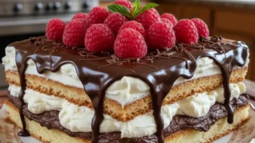 Die Kirschen in einem Sieb abtropfen lassen. Frische Kirschen waschen, abtropfen lassen und entsteinen. Die Kirschen unter den Teig heben. Den Teig auf einem Backblech verteilen und im vorgeheizten Ofen auf der mittleren Schiene etwa 35 Minuten backen. Abkühlen lassen und kurz vor dem Servieren mit Puderzucker bestäuben.