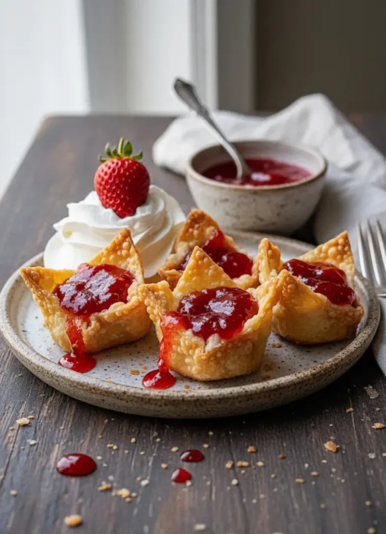 Knusprige Erdbeer-Wontons sind das perfekte Dessert für alle, die es fruchtig, süß und knusprig lieben! Diese asiatisch inspirierten Teigtaschen vereinen saftige Erdbeeren mit einer cremigen Füllung und werden goldbraun frittiert oder knusprig gebacken. Ideal für Partys, Brunch oder einfach als süße Überraschung zwischendurch. Das Geheimnis liegt in der Kombination aus frischen Erdbeeren, einer Prise Zimt und dem knusprigen Wonton-Mantel, der außen perfekt gebacken und innen weich und aromatisch ist.