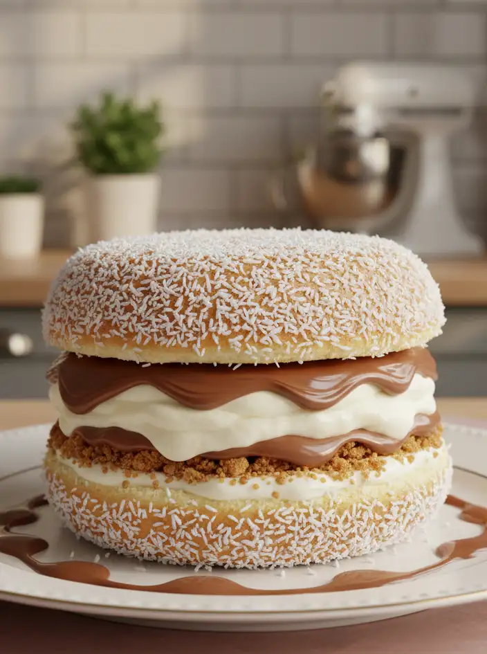 Das Kokos-Schneeball-Schokoladensandwich ist eine verführerische Kombination aus zarter Kokoscreme und schokoladigen Keksen. Es vereint die Süße und das aromatische Kokosnussaroma mit der reichen Schokoladennote, um ein köstliches Dessert zu kreieren, das sowohl Kinder als auch Erwachsene begeistert. Diese Sandwiches sind perfekt für Gartenpartys, als Proviant für unterwegs oder einfach als süße Versuchung für zwischendurch.