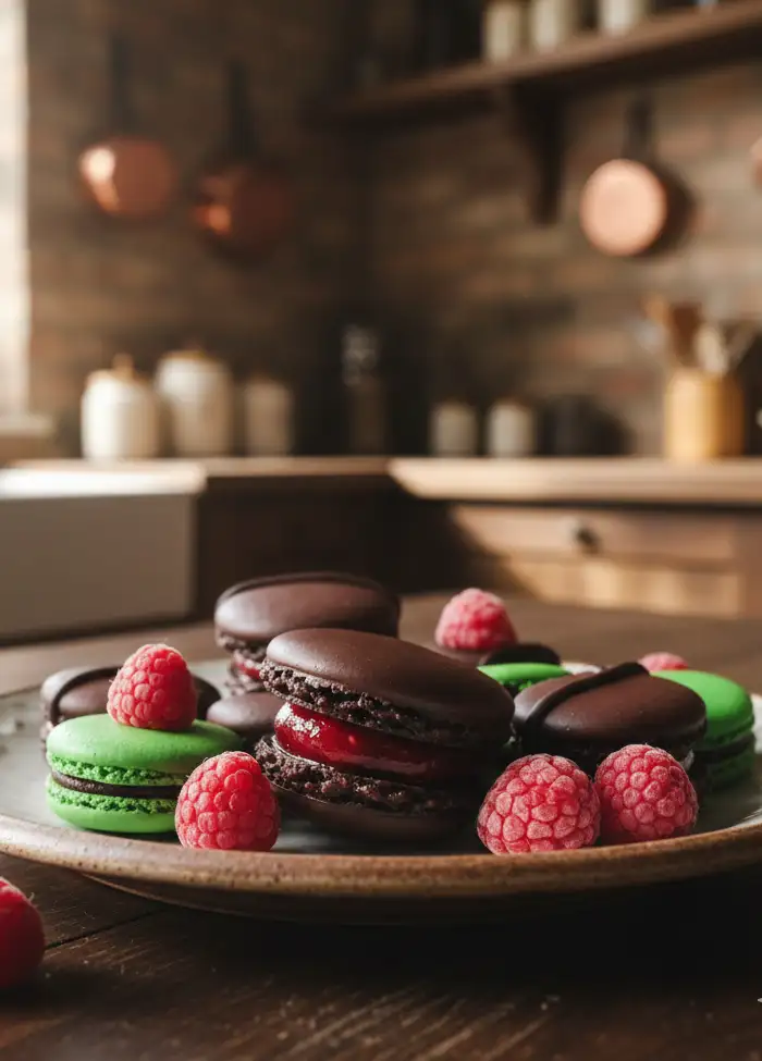 Himbeer-Macarons aus dunkler Schokolade sind ein himmlisches Gebäck, das durch die Kombination aus zartschmelzenden Mandelschnitten und einer fruchtigen Himbeerfüllung besticht. Diese kleinen Kunstwerke sind nicht nur ein echter Hingucker, sondern auch eine himmlische Geschmacksexplosion, die sowohl Schokoladen- als auch Beerenliebhaber begeistern wird. Mit diesem Rezept gelingt Ihnen die perfekte Balance zwischen süßem und saurem Geschmack, ideal für besondere Anlässe oder einfach für die süßen Momente im Leben.