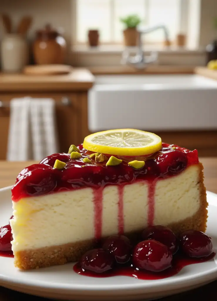 Der Zitrone-Limette-Kirsche-Pistazie-Kuchen vereint die frische Säure von Zitrone und Limette, die süße Fruchtigkeit von Kirschen und die nussige Raffinesse von Pistazien zu einem einzigartigen Geschmackserlebnis. Dieser Kuchen ist nicht nur ein optischer Hingucker, sondern auch ein kulinarisches Highlight für jede Kaffeetafel, Geburtstagsfeier oder besondere Anlässe. Die Kombination aus saftigem Biskuit, cremiger Füllung und knackigen Pistazien macht ihn zum absoluten Lieblingsstück für alle, die es fruchtig, frisch und raffiniert mögen!