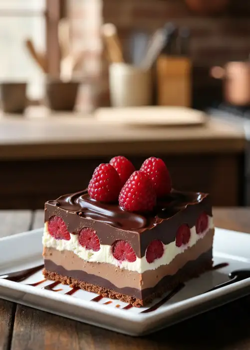 - Abkühlen lassen: Vor dem Servieren die Lasagne etwas abkühlen lassen und mit Puderzucker bestäuben. Mit frischen Himbeeren garnieren.