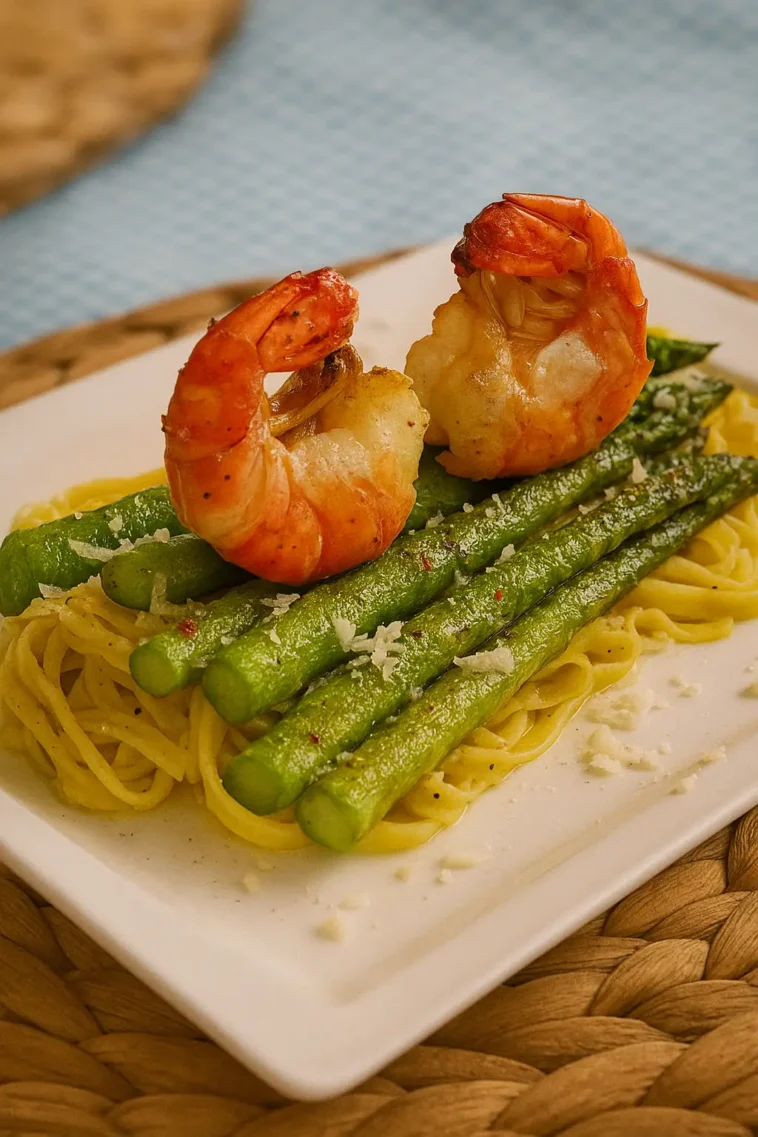 Dieses frische, aromatische Gericht vereint die feine Säure von Orangen mit dem zarten Biss von grünem Spargel und al dente Linguine. Die Orangensauce verleiht der Pasta eine fruchtige Note, während der Spargel für eine knackige Textur sorgt. Perfekt für ein leichtes, aber raffiniertes Frühlingessen, das in nur 30 Minuten auf dem Tisch steht. Das Rezept ist nicht nur schnell und einfach, sondern auch reich an Vitaminen und Ballaststoffen. Ideal für alle, die eine gesunde, aber geschmackvolle Mahlzeit suchen – ob für den Alltag oder besondere Anlässe.
