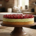 - Boden schneiden: Den abgekühlten Biskuitboden einmal horizontal durchschneiden, sodass zwei gleichmäßige Böden entstehen.