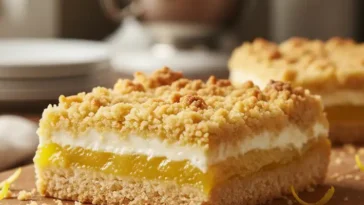 Für die Schecke die 3 Eier trennen. Eigelbe, Puderzucker und 1 Becher Schmand verrühren. Eiweiß steif schlagen und unterheben. Auf dem Kuchen verteilen und nochmal ca. 10 – 15 Minuten backen.