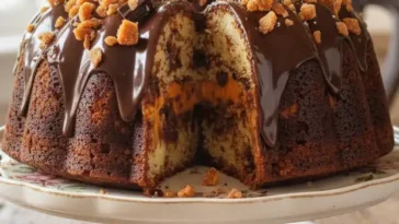 Butterfinger-Gugelhupf mit dekadentem Schokoladenüberzug