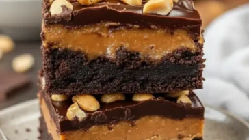 Klebrige Schokoladen-Erdnuss-Karamell-Brownie-Riegel