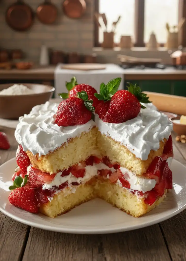 Der saftige Erdbeerkuchen mit Schlagsahne-Glasur ist ein unverzichtbarer Klassiker, der die Frische und Süße reifer Erdbeeren exzellent zur Geltung bringt. Mit einem fluffigen Rührteig, der perfekt saftig bleibt, und einer luftigen Schlagsahne-Glasur wird dieser Kuchen zu einem Highlight jeder Kaffeetafel. Ideal für besondere Anlässe oder einfach als süßes Dessert für die ganze Familie, überzeugt er durch seinen fruchtigen Geschmack und die einfache Zubereitung.