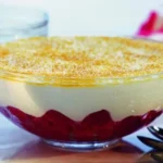 Nun schichten: Zuerst Creme, dann eine Schicht Rote Grütze, dann wieder die Creme – die letzte Schicht besteht aus der Creme.