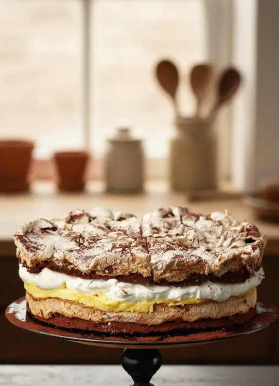 Diese Schokoladen-Baiser-Torte mit Maracujacreme ist ein absolutes Highlight für jeden Anlass: Eine perfekte Symbiose aus knusprig-schokoladigen Baiserböden und einer fruchtig-exotischen Maracujacreme, die durch ihre cremige Konsistenz und das intensive Aroma der Passionsfrucht besticht. Die Torte überzeugt nicht nur optisch durch ihre elegante Schichtung, sondern auch geschmacklich durch das harmonische Zusammenspiel von Schokolade und Maracuja. Ideal für Geburtstage, Festtagsmenüs oder einfach als süße Verführung für Schokoladen- und Fruchtliebhaber.