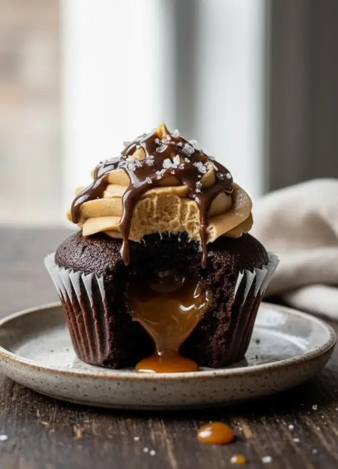 Stell dir vor, du beißt in einen saftigen, ultra-schokoladigen Cupcake, dessen Inneres so weich ist, dass er auf der Zunge zergeht. Doch das ist noch nicht alles: In der Mitte verbirgt sich ein cremiger Kern aus gesalzenem Karamell, der mit seiner süß-salzigen Note jeden Bissen zu einem unvergesslichen Geschmackserlebnis macht. Diese Schokoladen-Cupcakes mit gesalzenem Karamell sind nicht nur optisch ein Traum – mit ihrer glänzenden Schokoladenglasur und dem verführerischen Karamell-Topping – sondern auch ein kulinarisches Meisterwerk, das Schokoladenfans in Ekstase versetzt.