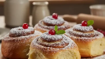 - Kakaopulver bestäuben: Mit einem Sieb leicht Kakaopulver darübergeben.