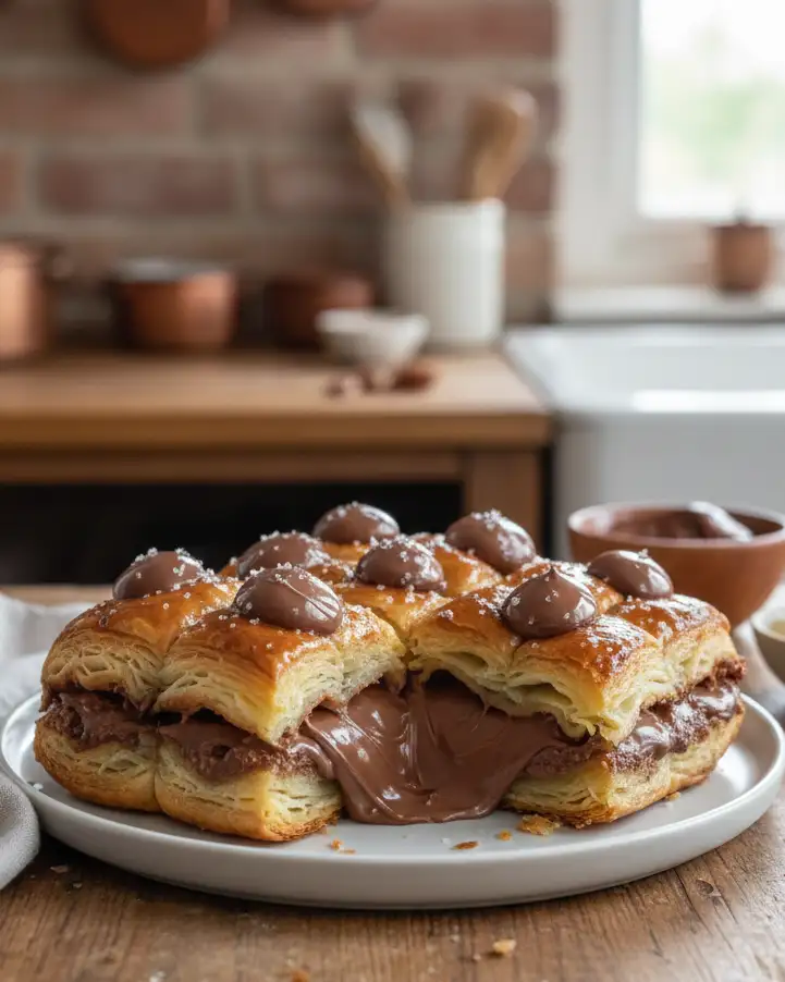 Die Schokoladen-Karamell-Blätterteigquadrate sind ein unwiderstehliches Gebäck, das mit minimalem Aufwand maximale Geschmacksexplosion garantiert: Knuspriger Blätterteig umhüllt eine Füllung aus cremigem Karamell und schmelzender Schokolade. Jedes Quadrat ist ein kleines Meisterwerk – außen goldbraun und knusprig, innen weich, süß und mit einem Hauch von Salz, das den Geschmack perfekt abrundet. Diese süßen Häppchen sind ideal für spontane Kaffeebesuche, als Mitbringsel oder als schnelle Nascherei für zwischendurch.