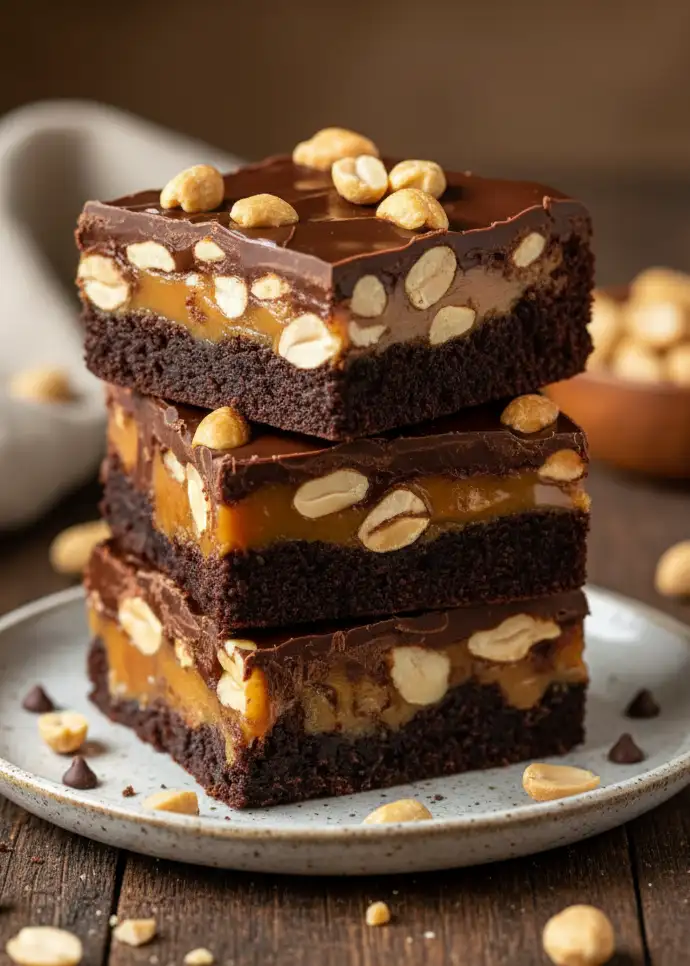 Stell dir vor: knusprige Ränder, ein saftig-schokoladiger Kern, der auf der Zunge zergeht, und dazwischen cremige Karamellströme, die sich mit knackigen Erdnüssen verbinden. Diese Schokoladen-Karamell-Erdnuss-Brownies sind kein gewöhnliches Backwerk – sie sind eine Explosion der Aromen, eine Hommage an die perfekte Kombination aus süß, salzig und nussig. Ob als Highlight auf deiner nächsten Kaffeetafel, als süße Überraschung für Freunde oder einfach als Belohnung für dich selbst – diese Brownies werden jeden verzaubern!