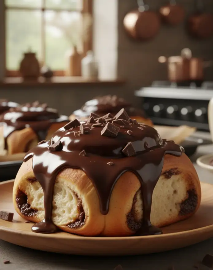 - Abkühlen lassen: Die Schokoladen-Zimtschnecken aus dem Ofen nehmen und kurz abkühlen lassen. Vor dem Servieren nach Belieben mit Puderzucker bestreuen.