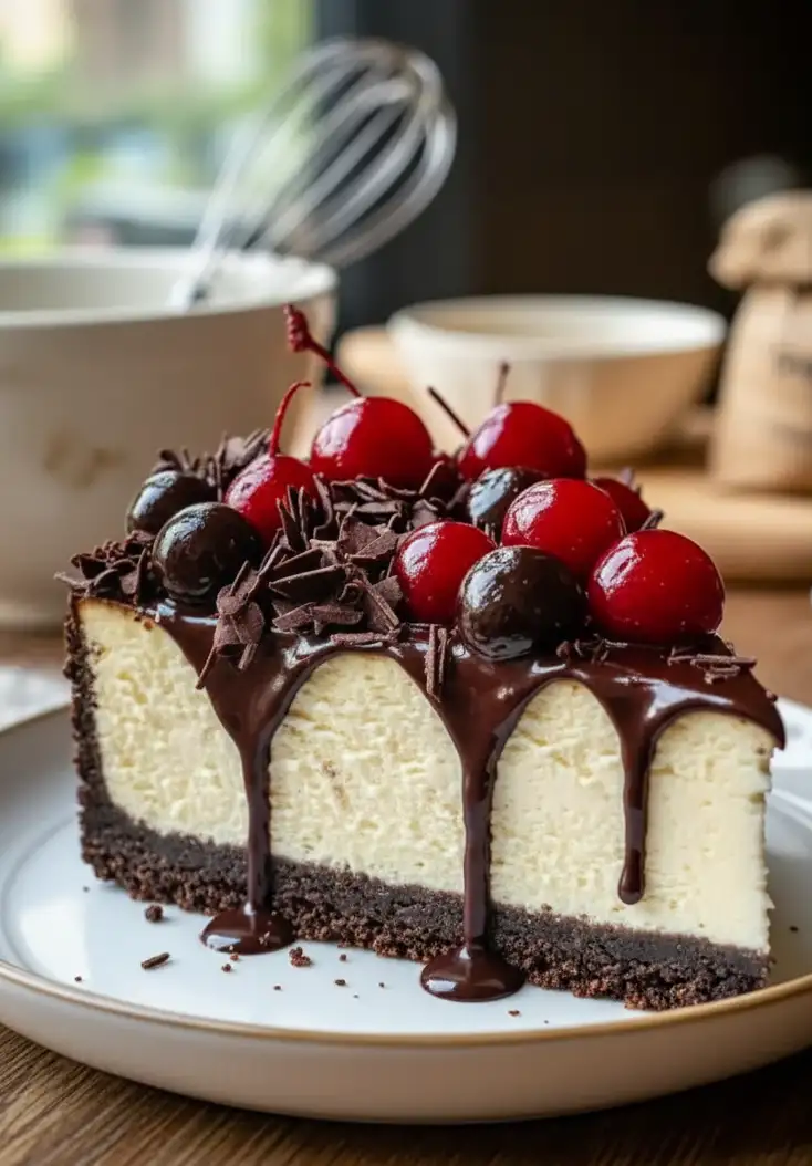 Der Schwarzwälder Käsekuchen ist eine köstliche Fusion aus zwei deutschen Klassikern: dem saftigen Schwarzwälder Kirschtorte-Konzept und der cremigen Leichtigkeit eines traditionellen Käsekuchens. Dieses Dessert vereint die intensive Aromenwelt des Schwarzwalds – mit Kirschen, Schokolade und einem Hauch von Kirschwasser – mit der samtigen Textur einer Quark-Schmand-Füllung. Perfekt für besondere Anlässe, Kaffeetafeln oder einfach als süße Belohnung nach einem guten Essen.