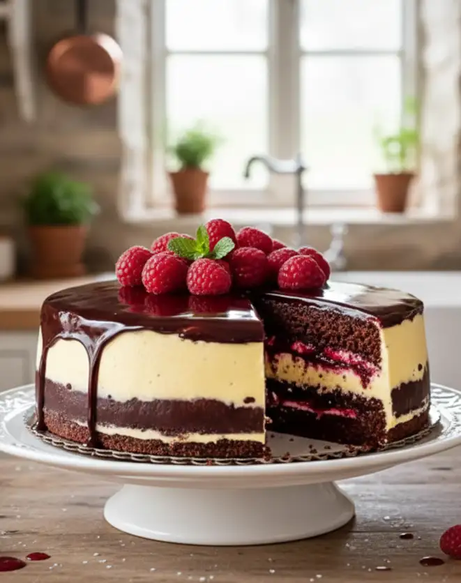 Die Schwarzwälder Käsetorte ist eine verführerische Variante des berühmten Schwarzwälder Kirschtorte-Klassikers – aber statt Sahne und Kirschen dominiert hier eine luftig-cremige Käsefüllung auf Basis von Frischkäse, Sahne und einer dezenten Kirschnote. Kombiniert mit einem schokoladigen Mürbeteigboden und einer leichten Kirschfüllung entsteht ein harmonisches Dessert, das traditionelle Aromen mit moderner Leichtigkeit verbindet.