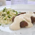In einer Schüssel Shrimps, Pfefferkörner, Mayonnaise und Milch vermischen. Mit Zitronensaft, Curry, Zucker, Salz und Pfeffer abschmecken.