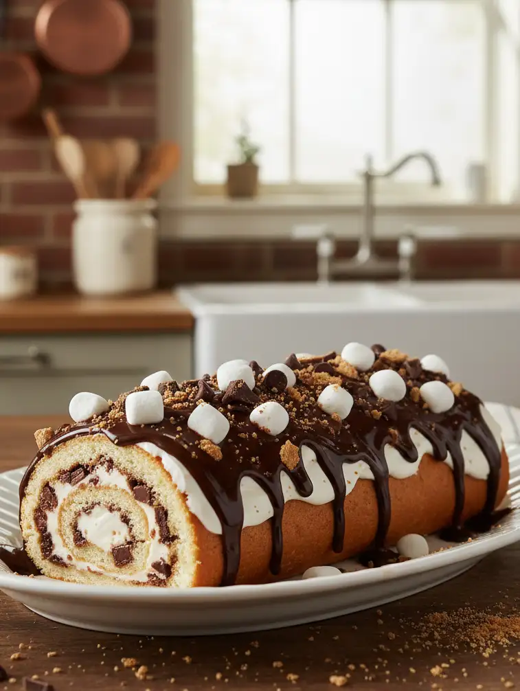 - Servieren: Vor dem Servieren die Rolle in dicke Scheiben schneiden und nach Belieben mit zusätzlicher Schokolade oder Marshmallows dekorieren.