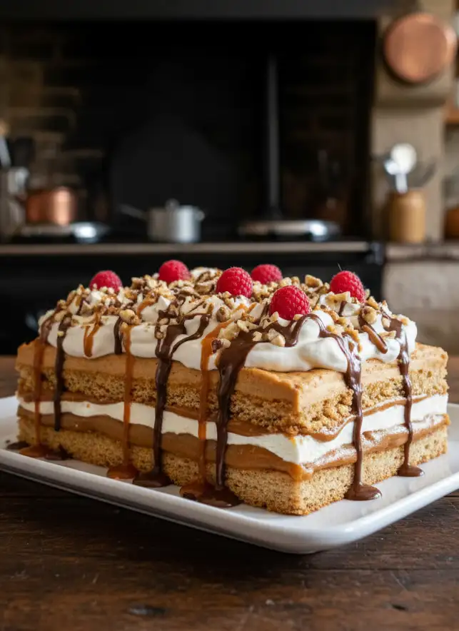Das Toffee Crunch Eisbox-Dessert ist eine himmlische Mischung aus cremigem Eis, knusprigem Karamell und einer feinen Schokoladenfüllung. Dieses Dessert ist nicht nur eine Augenweide, sondern auch eine wahre Geschmacksexplosion, die die perfekten Noten von süßen und salzigen Aromen miteinander verbindet. Ideal für warme Tage oder als krönenden Abschluss eines festlichen Dinners, bringt dieses Eisbox-Dessert jeden zum Schmelzen und sorgt für unvergessliche Geschmackserlebnisse.