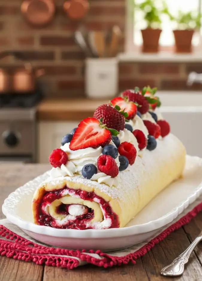Die Vanille-Beeren-Kuchenrolle ist ein leichtes und luftiges Dessert, das ideal für besondere Anlässe oder einfach als süßes Highlight im Alltag ist. Mit einer zarten Vanille-Biskuitrolle, gefüllt mit einer cremigen Beerenmischung, wird diese Rolle nicht nur geschmacklich überzeugen, sondern auch optisch ein Genuss sein. Perfekt für Gäste oder für einen festlichen Kaffeetisch, bringt sie Farbe und Geschmack auf den Tisch.